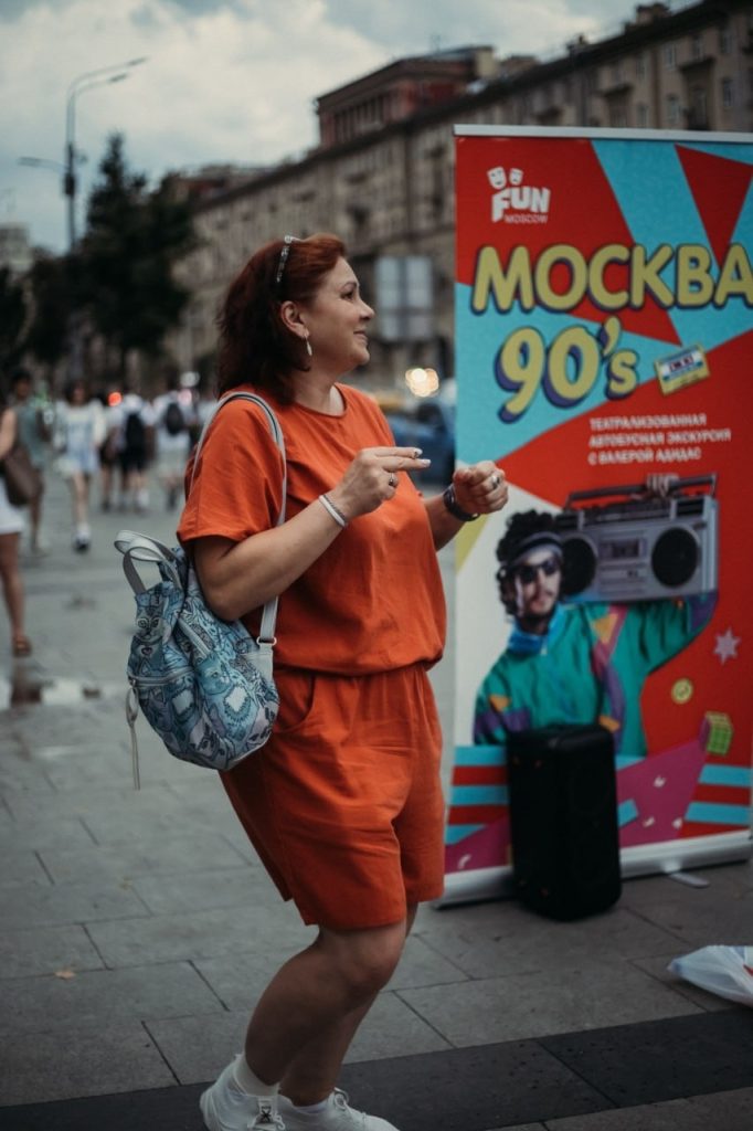 Это автобусная театрализованная экскурсия по Москве в лихие 90-е! Театральное шоу, стендап, музыка, танцы, флешмобы и полное погружение в эпоху тех лет с профессиональным актером театра и кино в образе Валеры Адидас. Программу ведет действующий артист театра, ведущий и музыкант в одном лице. Скучать не получится!
